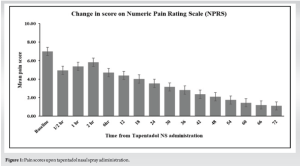 All statistical methods were based on the International Council for Harmonization E9 document “Statistical Principles for Clinical Trials” and performed using IBM Statistical Packages for the Social Sciences 29.0.2.0. The null hypothesis of the study was that tapentadol NS administration has no effect in the management of pain (P > 0.05), whereas the alternate hypothesis was that tapentadol NS administration has an effect in pain management (P < 0.05). Quantitative data were expressed as mean ± standard deviation (SD), median, minimum and maximum, standard error of the mean, standard error, and 95% CI, as appropriate. Categorical variables were reported as proportion/percentage. Scores on NPRS were analyzed using one-way or repeated measures analysis of variance with post hoc (Bonferroni correction); P < 0.05 was considered statistically significant.
