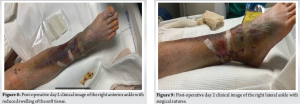 The subcutaneous layers and periosteum were closed using a combination of 2-0 and 3-0 Vicryl sutures. The skin incisions were then closed with 4-0 nylon using a Hemigard suture technique. The surgical site was dressed with Betadine, 4 × 4 dressings, and Kerlix, followed by the application of a well-padded posterior splint to the right lower extremity.
