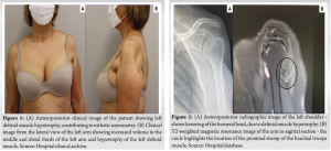 Still in 2018, the patient began stimulation with the EMSCULPT device (BTL Industries Inc., Boston, MA), which generates electromagnetic fields, aiming to improve muscle atrophy. However, she maintained the condition of progressive deltoid muscle hypotrophy and an increase in volume in the distal and medial region of the arm due to muscle retraction. In January 2021, the patient sought the Orthopedics and Traumatology of the Shoulder and Elbow team at the German Hospital Oswaldo Cruz, due to persistent symptoms. Radiographic images revealed a lowering of the humeral head, due to deltoid muscle hypotrophy (Fig. 2a). Magnetic resonance imaging of the arm showed a distal retraction of approximately eight centimeters of the lateral head of the triceps associated with deltoid muscle atrophy (Fig. 2b). In March 2022, a surgery for reconstruction of the proximal portion of the triceps with a homologous fascia lata graft was performed. Immediately postoperatively, improvement in the posterior contour of the left shoulder and a decrease in volume in the middle third of the left arm were noted, indicating a positive initial response to the intervention (Fig. 3). Two weeks after the procedure, local hyperemia and formation of a collection next to the distal incision were observed, and ultrasound sonography-guided puncture was performed, with subsequent improvement.