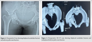 A 25-year-old female student presented to the emergency department following a high-velocity road traffic accident. She complained of unbearable right hip pain and inability to sit or stand. There was no history of comorbidities, prior surgeries, or anticoagulant use. On examination, the patient had swelling and marked tenderness over the right hip, with a limited and painful range of motion. Distal neurovascular examination was normal, and no signs of vascular compromise were observed. Pelvic radiographs and computed tomography (CT) scans revealed a displaced acetabular fracture involving the anterior column and superior pubic ramus (Fig. 1 and 2). Given the fracture pattern and patient’s functional demands, open reduction and internal fixation (ORIF) through an anterior intrapelvic (modified Stoppa) approach was planned.