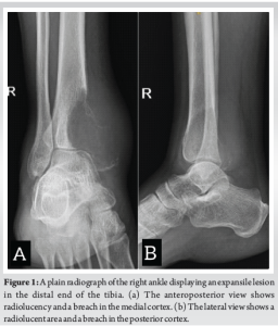Case Report: A 36-year-old male presented with progressively enlarging right ankle swelling for 3 months, accompanied by dull, diffuse pain aggravated by weight-bearing. He reported significant weight loss over 6 months but no history of trauma. Radiographs confirmed the diagnosis and higher investigations were done to stage the disease. After a multidisciplinary discussion with surgical oncology, he underwent wide excision and bone transport using an Ilizarov ring fixator.