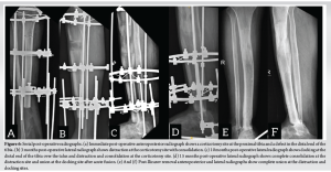 Results: The case was managed with the above-mentioned procedure, distraction was done for a period of 90 days, and the frame was removed after union at the docking site. Post-removal radiographs were done to confirm union at the distraction site and docking site. The patient gradually started weight-bearing in the limb.