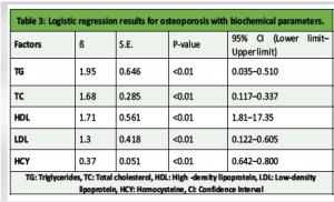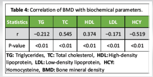 Conclusion: This study highlights significant associations among osteoporosis, lipid profiles, HCY levels, BMD, and CVD. The findings suggest that dyslipidemia and altered HCY metabolism may contribute to both bone loss and cardiovascular pathology. BMD may serve as a potential biomarker for identifying individuals at increased cardiovascular risk. Further longitudinal research is needed to establish causal relationships and assess long-term clinical outcomes.