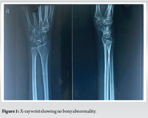 Conclusion: This case highlights the importance of considering rheumatoid tenosynovitis in the differential diagnosis of chronic wrist swelling, even in seronegative individuals. In ambiguous cases, surgical intervention not only alleviates symptoms but also allows for definitive diagnosis through histopathology. A multidisciplinary and vigilant approach is crucial to prevent misdiagnosis and preserve hand function in such presentations.