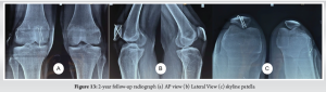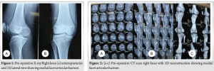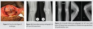 - Fixation was found to be satisfactory under C-arm and stable during flexion and extension. The extrarticular K wires were bent and cut. Medial parapatellar arthrotomy wound closed.(Fig. 9).