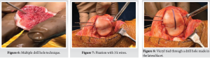 - The fracture bed and fracture fragment were made rough by drilling multiple times using 2 mm K wire for 1 to 2 mm depth (Fig. 4).