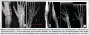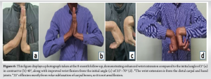 Alongside the X-ray images, presented in (Fig. 5 and 6), are photographs captured during a 6-month follow-up of the clinical case. These visuals showcase enhanced hand functionality, encompassing improved grip strength and expanded ROM in both wrist flexion and extension [3,6].
