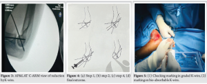 To insert a graded K-wire perpendicular to the fracture, measure the distance inserted to the bone by checking the grading in the graded K-wire (Figs. 4,5).