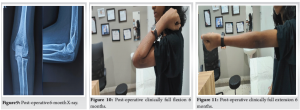 Postoperatively, a long arm cast was applied for 1 month. Daily routine and functional exercises were started once the cast was removed. Patients were evaluated at intervals of 1, 3, 6, and 12 months after surgery with clinical and radiological results assessment (Fig. 8,9).