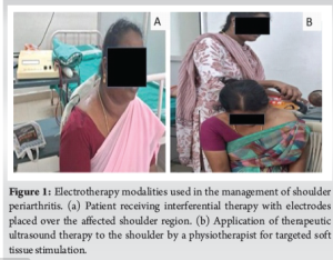 Sessions were tapered from 3/week to once weekly over 3–6 months. Present clinical guidelines and rehabilitation practices often recommend a multimodal therapy approach rather than relying on a single treatment, especially for musculoskeletal conditions. All patients also followed a prescribed home-based exercise program to maintain shoulder mobility.