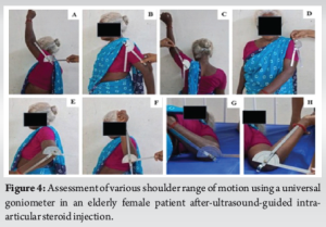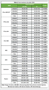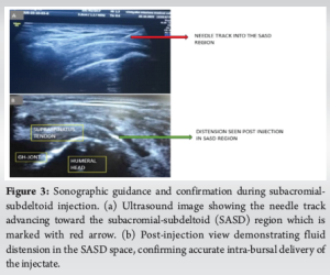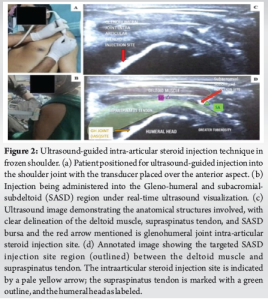 In summary, this study provides robust evidence supporting the use of ultrasound-guided intra-articular corticosteroid injections as an effective and safe first-line intervention in patients with shoulder periarthritis. It also highlights the value of comprehensive, patient-centered rehabilitation and the importance of early intervention in altering the trajectory of this chronic, disabling condition.