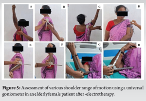 Outcomes were assessed at baseline, 1, 3, 6 months, and 1 year. The primary measure was the SPADI score (0–100), evaluating pain and disability. Secondary outcomes included ROM measurements (flexion, abduction, rotations, extension, adduction) using a goniometer, with a composite ROM score calculated for overall shoulder mobility (Figs. 4 and 5). SPADI and ROM are widely accepted and validated tools in shoulder research.