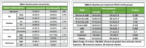 Results: UG-IASI resulted in significantly greater SPADI and ROM improvements than ET at 1, 3, and 6 months (P < 0.05). By 1 year, the difference was no longer significant. UG-IASI showed notable gains in abduction and flexion. Diabetic patients experienced reduced improvements across both groups.