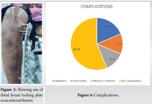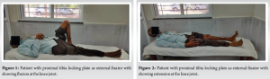 Conclusion: Metaphyseal locking plate can be an effective alternative to unilateral external fixator in terms of patient compliance, achieving good knee-ankle range of motion, fracture union, and thereby achieving good functional outcome.