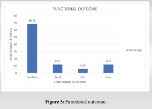 Results: The mean time to bony union was 19.7 weeks and the standard deviation is 5.75. Two cases of non-union, 3 cases of malunion, and 11 cases of union in proper alignment were achieved. 11 patients had excellent (68.75%), 2 had good functional results (12.5%), 1 had a fair functional outcome (6.25%), and 2 cases had poor functional outcome (12.5%).