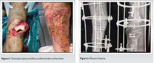 The case report’s justification is that complicated fractures involving substantial bone loss or comminution frequently pose difficult therapeutic problems. Due to its capacity to stabilize fractures and encourage bone regeneration through distraction osteogenesis, the Ilizarov technique has become a mainstay in the management of such injuries.