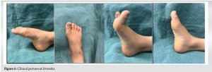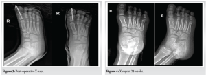 The patient was discharged after 48 h of IV antibiotics (cefazolin) post-operatively, advised forefoot off-loading and prescribed oral cefuroxime for 7 days with a follow-up in the clinic the following week for wound check. Two weeks post-surgery, the wound was healed, and sutures were removed, big toe sensation was preserved, X-rays showed a stable implant and HIP joint. At 4 weeks post-operatively, the K-wire was removed, and radiographs showed a stable HIP joint. At 12 weeks, the patient had a painlessly mobile great toe. At 24 weeks follow-up the patient was found to have a painless full right big toe range of motion and was hence discharged from the clinic (Fig. 4 and 5).