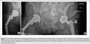 Keywords: Atypical periprosthetic femoral fracture, bisphosphonate therapy, femoral stem breakage, hip arthroplasty, fracture fixation, osteoporosis, surgical management.