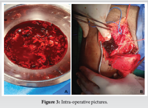 The patient was taken up for the surgery by the cardiothoracic and vascular surgery team, where the patient underwent hematoma evacuation and ligation of profunda femoris artery (Fig. 3). The patient had developed hypovolemic shock and was intubated. He succumbed the subsequent day due to cardiac arrest.