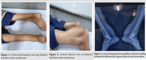 Introduction: Tendoachilles xanthoma is a very rare soft-tissue swelling encountered in orthopedic outpatient departments. An early diagnosis and intervention are crucial to prevent tendon dysfunction and systemic complications. Tendoachilles xanthoma, though uncommon, should be considered in patients with bilateral Achilles tendon thickening.