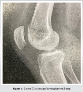 Chronic patellar dislocation during flexion without prior trauma is often misdiagnosed. The failure of patellar engagement with the trochlea during flexion may be due to both soft tissue and bony anomalies. The femoral bump, described by Pujol and Beaufils [1], is an anterior overgrowth of the distal femur, which impairs patellar glide and promotes lateral dislocation under flexion stresses. While MPFL reconstruction is commonly used to address recurrent patellar instability [2,3], its isolated use in cases with bony deformity can lead to recurrence or graft overload [4]. Thus, an osteotomy that corrects the anatomical abnormality, in this case via anterior subtraction, is justified. Previous work by Dejour et al. [5] has shown that patellofemoral instability is multifactorial, often requiring combined surgical techniques. Our patient presented with a positive Smillie test and demonstrated a femoral bump on CT imaging, with no rotational malalignment. The use of distal femoral osteotomy to remove the bump corrected the bony conflict and restored patellar tracking. The addition of MPFL reconstruction further enhanced medial stability, particularly in the early post-operative period. Biomechanical studies have confirmed that the MPFL contributes to 50–60% of medial restraint during early flexion [6,7]. Positioning the femoral tunnel correctly at Schöttle’s point is critical to avoid overtensioning or failure [8]. Other studies have described similar combined approaches with encouraging outcomes. Wagner et al. [9] noted improved tracking with dual interventions in patients with complex trochlear or femoral morphology. Long-term results are encouraging, but careful patient selection and anatomical analysis remain essential [10].