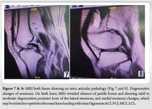 On inquiring him, he doesn’t recall any problem during his childhood and performing his military duties. On clinical examination of the patient, he had characteristic features of patellar absence with prominent femoral condyles and hollow sulcus as per computed tomography (CT) both knees (Fig. 5,6).