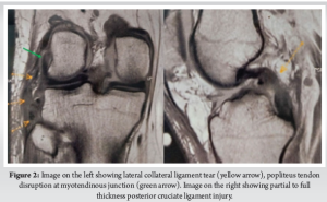 - 7.Griffith CJ, Wijdicks CA, Goerke U, Michaeli S, Ellermann J, LaPrade RF. Outcomes of untreated posterolateral knee injuries: An in vivo canine model. Knee Surg Sports Traumatol Arthrosc 2011;19:1192-7. [Google Scholar]