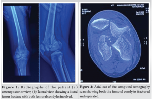 Conclusion: This case highlights the role of precise anatomical reduction, CT evaluation, and early mobilization in managing complex distal femur fractures. This report adds to the limited literature on bicondylar Hoffa fractures without metaphyseal comminution.