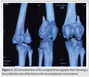 - 5.Zeebregts CJ, Zimmerman KW, Ten Duis HJ. Operative treatment of a unilateral bicondylar fracture of the femur. Acta Chir Belg 2000;100:104-6. [Google Scholar]