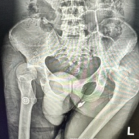 The number of reverse total shoulder arthroplasty (RTSA) procedures in the United States is projected to reach 300,000 by the end of 2025 and is estimated to increase by another 122% by 2040 [1]. This increase is partly attributable to the procedure’s broadening indications, which include rotator cuff tear arthropathy, massive irreparable rotator cuff tear, proximal humerus fracture, glenoid bone loss, tumor, osteoarthritis, and failed anatomic shoulder arthroplasty [2,3]. However, as the number of RTSAs has grown since 2014, so has the incidence of procedure-associated complications. Complications following RTSA include neurologic injury, bleeding, infection, scapular notching, dislocation, hardware failure, acromial fracture, and periprosthetic fracture [4-6]. Periprosthetic fracture can be a devastating complication with substantial implications for patient outcomes [7,8]. The incidence of such fractures in RTSA is reported to range from 0.7% to 1.4% [9-12]. After a periprosthetic fracture, whether to perform revision surgery or treat the fracture nonoperatively is a challenging decision with important implications for the patient’s functional outcome. We present the case of a 77-year-old female patient who fell 9 years after undergoing RTSA and sustained a left periprosthetic transverse proximal diaphyseal fracture with deformation of the humeral implant stem but no fracture of the implant. She was treated nonoperatively and achieved a satisfactory functional result but had delayed healing of the fracture.