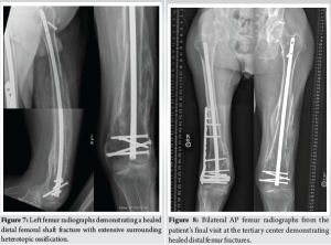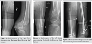 Conclusion: Clinicians should be aware of the potential complications associated with intramedullary nailing and revision open reduction internal fixation in paraplegic patients who present with bilateral distal femoral shaft fractures. Treatment remains controversial and should be tailored to each patient.