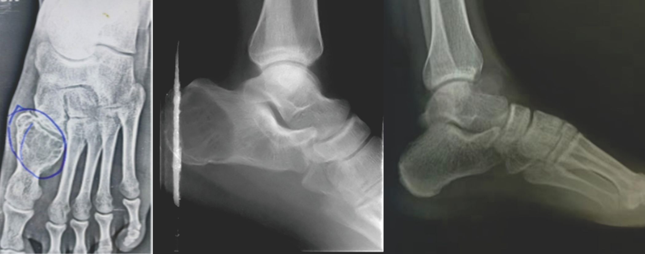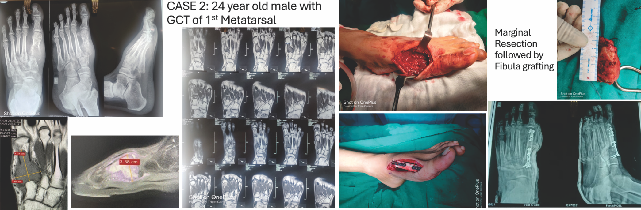 Figure 8: Giant cell tumor of 1st metatarsal in 24 year old male treated with marginal resection followed by fibula grafting.