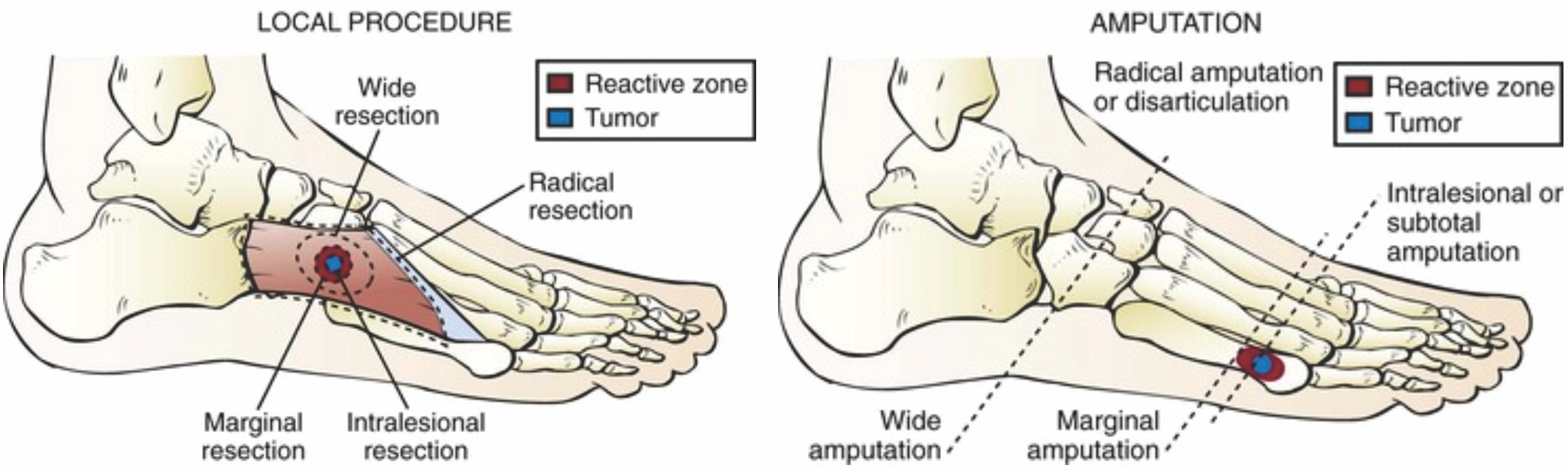 Figure 4: Local procedures like wide resection, marginal resection. Radical procedures like ray amputation, disarticulation.