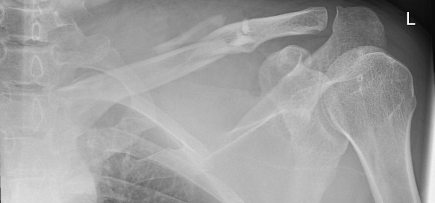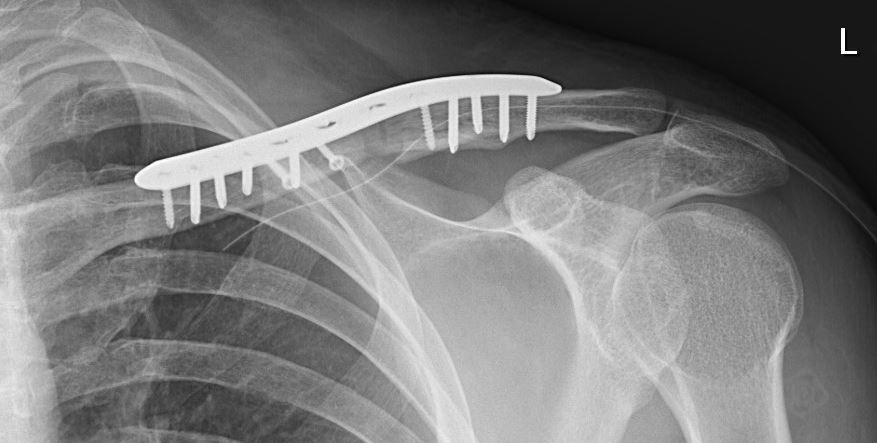 Figure 4: Radiographs 6 months after trauma demonstrate complete bony healing of the clavicle fracture.