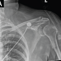 Figure 1: Radiographic imaging of the affected left shoulder region: Slightly displaced,
