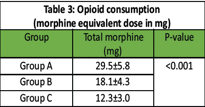 Table 3: Opioid consumption (morphine equivalent dose in mg)