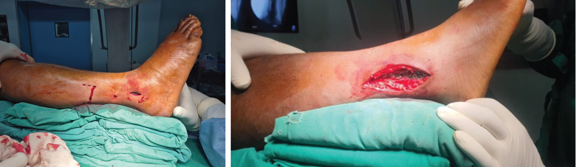 Figure 9: Wound complications in a patient where open reduction and internal fixation were done.