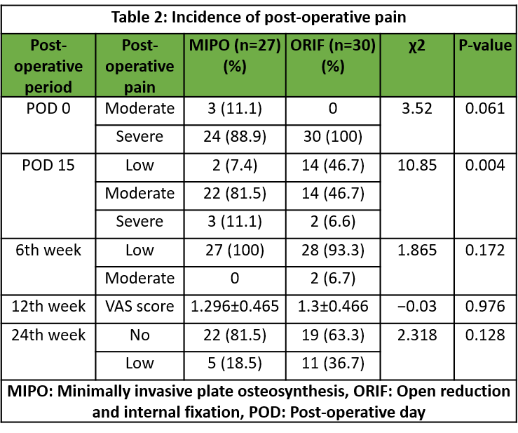 Table 2: Incidence of post-operative pain