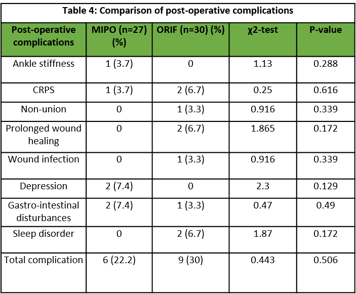 Table 4: Comparison of post-operative complications