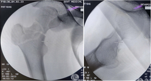 Fractures of the femoral neck are one of the most common orthopedic injuries, predominantly seen in elderly patients. In younger patients, these are usually the result of a high-energy trauma, such as a motor vehicle accident or fall from height, and there may be associated injuries, such as ipsilateral femoral shaft fractures, distal radius fractures, and proximal humerus fractures [1]. Concomitant injury to the femoral neck and trochanteric area is very rare and has mostly been reported in the elderly [2]. Unlike elderly patients, where arthroplasty is the treatment of choice, in younger patients, it is recommended to reduce and fix the fractures as early as possible. Concomitant neck of femur and greater trochanter (GT) carry a substantial risk of complications, including avascular necrosis (AVN) of the femoral head, impaired functioning of the hip abductor muscles, and malunion and non-union [3]. We, hereby, report an extremely rare case of a 23-year-old male patient who sustained concomitant neck and GT of femur fracture, which was operated with closed reduction and internal fixation with percutaneous partially threaded cannulated cancellous (CC) screws.