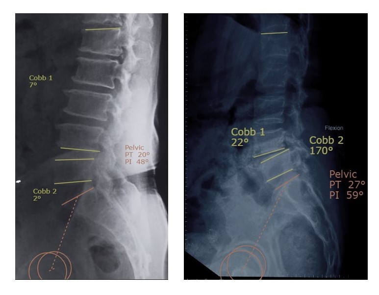 - Disc angle – The angle between the lower end plate of L4 and upper end plate of L5 on standing X-ray.
