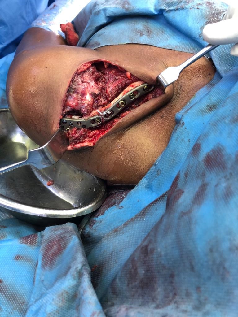 Proper hemostasis was achieved and wound was closed in layers. No drain was applied. The arm was immobilized in an arm pouch. Immediate post-operative radiograph was done (Fig. 2).