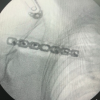 Figure 1: Clavicular fracture fixation done with anatomically pre-contoured plate and ligamentous reconstruction done with tunneled suspensory device (EndoButton).