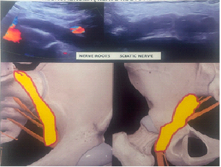 Figure 3: Ultrasonography image and demonstration of sciatic nerve tumor in the pelvis.