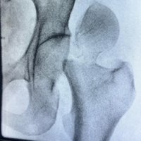 Rehabilitation program included touch weight bearing on the right lower limb for 6 weeks along with leg elevation and active movements of the hip. Hip abductor strengthening, static and dynamic quadricep strengthening exercises. Post-operatively, at 6 weeks, the patient had a good range of movements of the hip, was able to fully weight bear and walk independently without assistance. At 3 months post-operatively, the patient reported significant improvement in pain and function. He was walking independently with a normal gait, the Trendelenburg test was negative, and hip range of motion was full and painless (110° of hip flexion and normal rotations). The Harris hip score improved from 36 pre-operatively to 89 at follow-up. Follow-up radiograph at 1 year showed good joint space, congruent articular surfaces, and no evidence of AVN of the femoral head (Fig. 6).