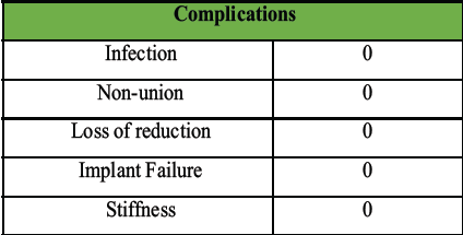 All 30 patients had successful fracture union. On X-ray examination, a well-defined callus was noted in operated patients within a timeframe of 3–6 months following the surgical procedure.