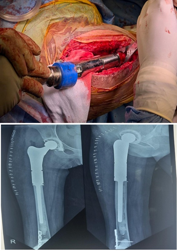 Figure 4: Mega prosthesis of the proximal femur after excision of the tumor.