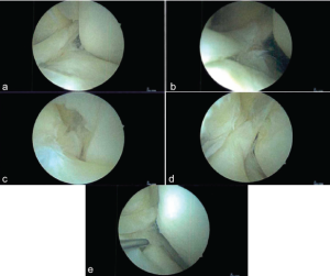 Figure 5: (a-e) Patient 2’s anterolateral meniscofemoral ligament viewed through an anteromedial arthroscopic porthole.