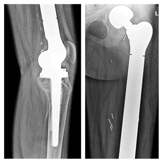 Discussion: Total femur replacement is a rare but necessary procedure in cases of extensive tumor involvement, especially after inadvertent contamination. Proper pre-operative planning, including imaging and biopsy by an experienced surgeon, is critical to avoid such complications. Advances in prosthetic design, including modular implants and enhanced fixation techniques, have improved functional outcomes. A multidisciplinary approach involving oncologists, orthopedic surgeons, and pathologists is essential for optimal management.