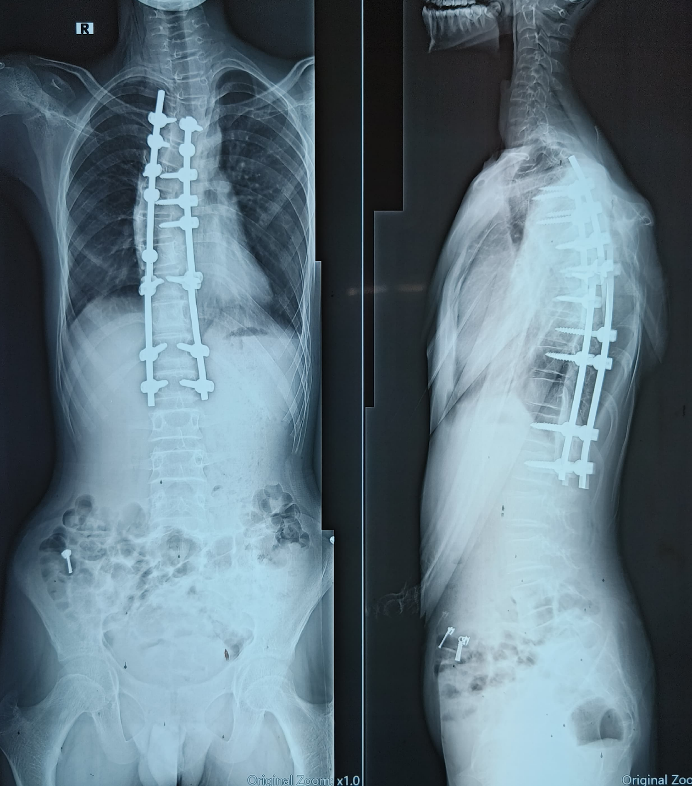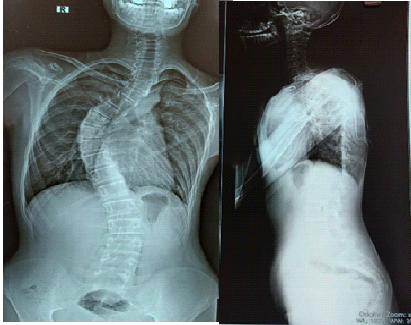 Figure 2: X-ray showing scoliosis with the right main thoracic curve.